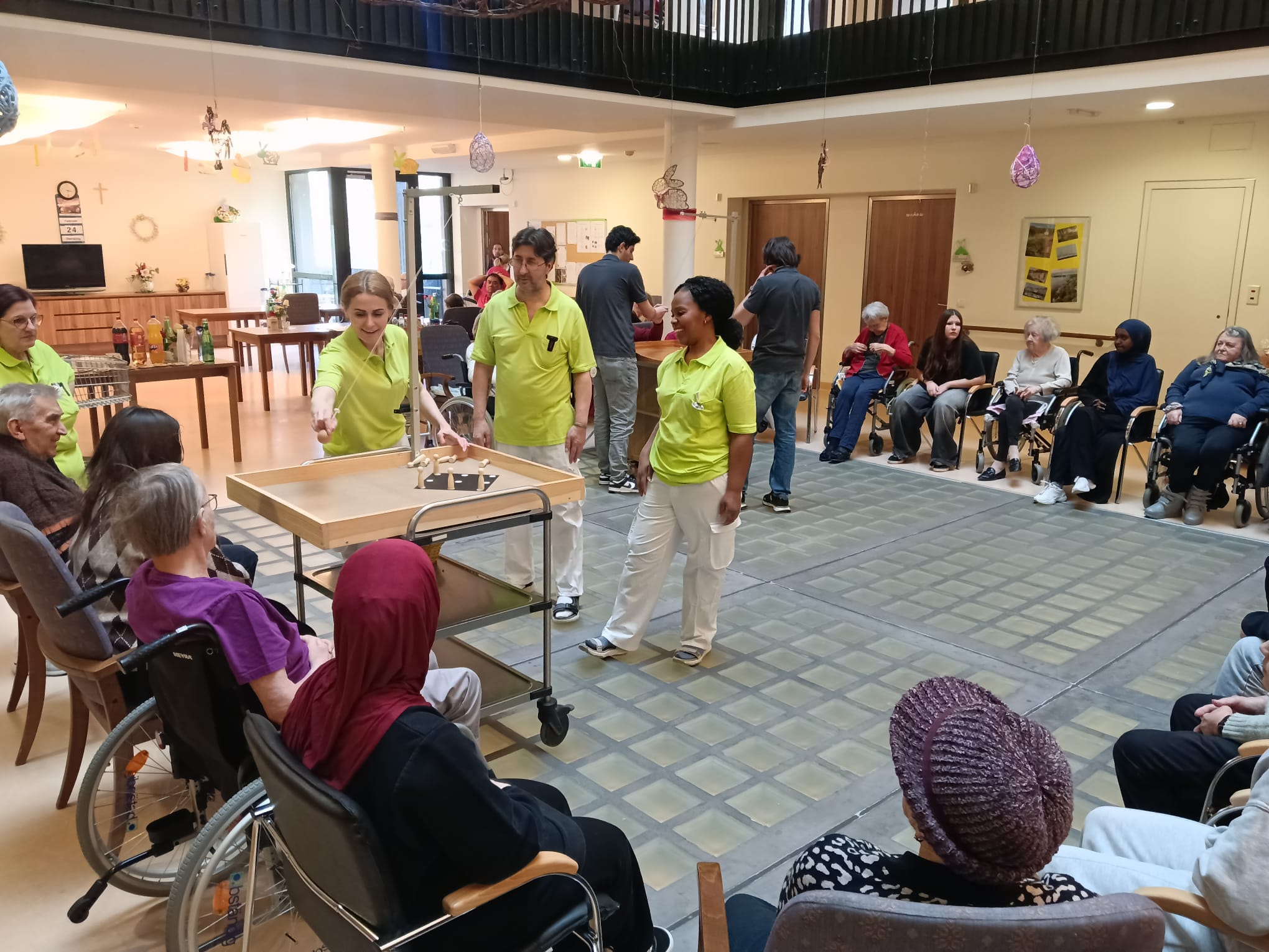Am Nachmittag des 24.02.2026 besuchte der Fachbereich Gesundheit unserer Schule ein örtliches Pflegeheim, um gemeinsam mit den Bewohnerinnen und Bewohnern ein generationsübergreifendes Projekt zu gestalten. Im Mittelpunkt stand das gemeinsame Kegelspiel.