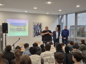 Im Rahmen eines besonderen Workshops an der Fachmittelschule Wien 20 trafen Schülerinnen und Schüler den aktiven Polizisten und UNO-Sonderermittler Thomas Obruča sowie den Überlebenden des Massakers von Ahmići, Adnan Zec.